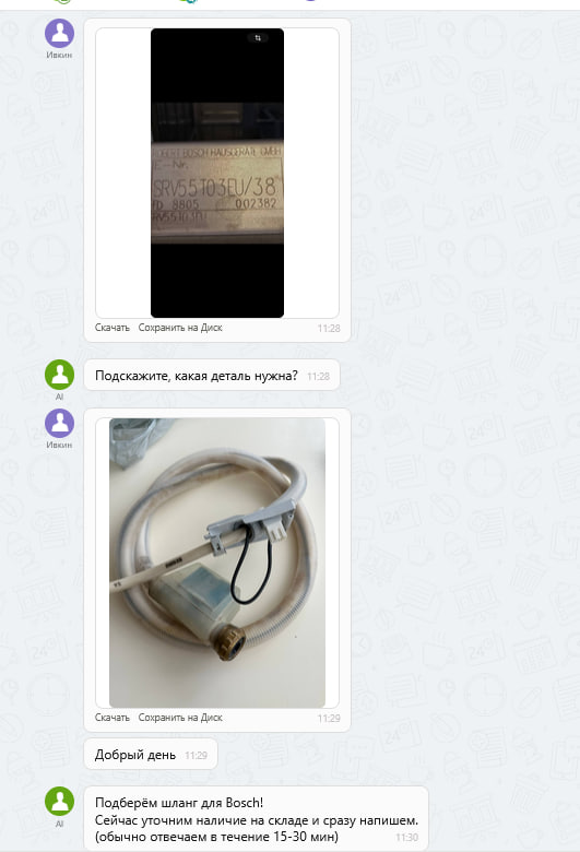 При большом потоке входящих обращений отдел продаж тратит время на первичный пинг-понг с клиентами: расшифровку голосовых, изучение фото шильдиков и ответы на однотипные вопросы.