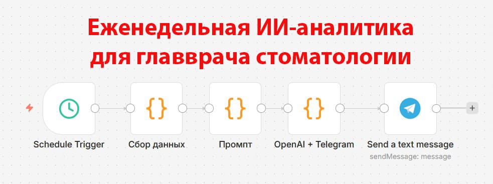 Перевести клинику от сухой статистики к управлению на основе данных. Стандартная CRM не отправляет автоматические ежедневные сводки и не показывает слепые зоны: кто из врачей просел, а кто из пациентов с высоким чеком давно не приходил. Задачей было создать двухуровневую систему: ежедневный статистический отчет для жесткого контроля выручки и ИИ-алгоритм, который анализирует историю приемов, выдавая главврачу готовый план действий.